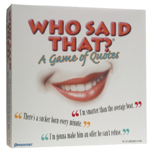 Who Said That Is a game for everyone with 400 quotes taken from famous people commercials movies cartoon characters and more On your teams turn you get two quotes one at a time When you guess Who Said It correctly and in time you move ahead two spaces on the game board Stuck Thats Read More..