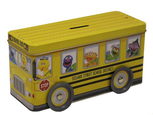 Adorable Sesame Street School District bus bank with rolling wheels featuring 12 favorite Sesame Street characters With working tin wheels Great bank for kids and adults Officially licensed by Sesame Street Read More..